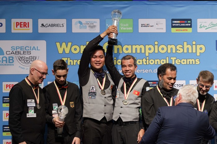 [Brilliant Billiards=유성욱 기자] SOOP(각자 대표이사 서수길, 최영우)이 생중계한 ‘제38회 팀 3쿠션 세계선수권’에서 베트남이 우승을 차지했다. SOOP은 독일 비어센에서 열린 이번 대회 전 경기를 전 세계에 생중계하며 다양한 콘텐츠를 제공했다. 베트남은 결승에서 독일을 세트 스코어 2대 0으로 꺾고 통산 두 번째 우승을 기록했다. 2024년 첫 우승 이후 2025년 준우승을 거쳐 다시 정상에 오르며 최근 3년 연속 결승 진출이라는 성과도 이어갔다.