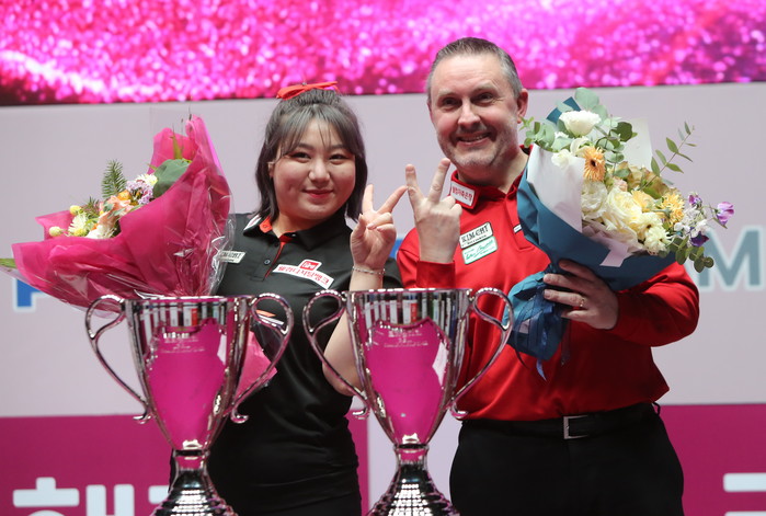 ▲ 웰빙저축은행에서 남녀 우승을 독차지, 김예은과 쿠드롱이 포즈를 취하고 있다 |