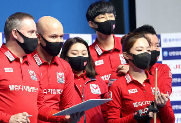 [브릴리언트 빌리아드=조용수 기자] 블루원리조트가 10일 '신한금융투자 PBA 팀리그 2020-2021' 5라운드에서 전날 웰컴저축은행에 이어 이번에는 TS·JDX를 세트스코어 4 대 2로 제압했다. 잇따른 1위 팀을 잡은 결과 최하위에서 벗어났다. 최하위에 머물러 있던 블루원리조트라 더욱 강렬한 인상을 남겼다. 그야말로 꼴찌의 대반란이다.