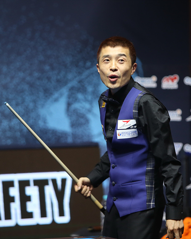 결승전에서 황영범을 만나 샷을 준비하는 김봉철 선수