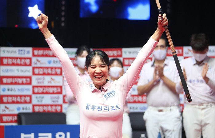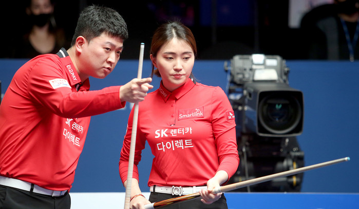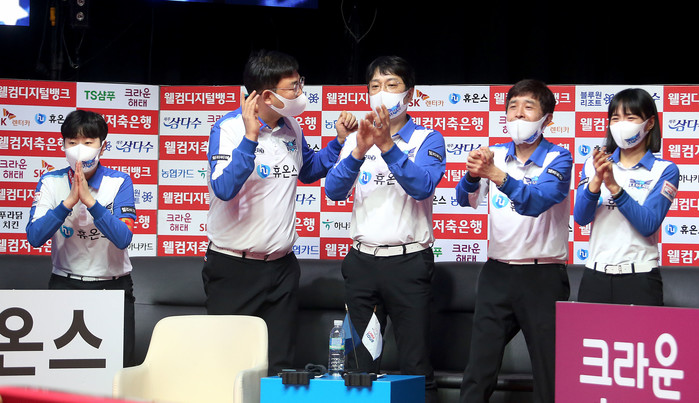 전날까지 5연승 가도를 내달린 NH농협카드는 라운드 최종일서도 여세를 몰아 크라운해태를 제압했다. ‘팀 리더’ 조재호와 김현우, 김민아가 나란히 2승씩을 챙기며 팀 승리를 견인했다. 1세트 조재호와 김현우가 김재근-박한기를 상대로 11:7(8이닝) 승리한 데 이어, 2세트서는 김민아-김보미가 임정숙-백민주를 9:8(9이닝) 한 점차로 물리쳤다.