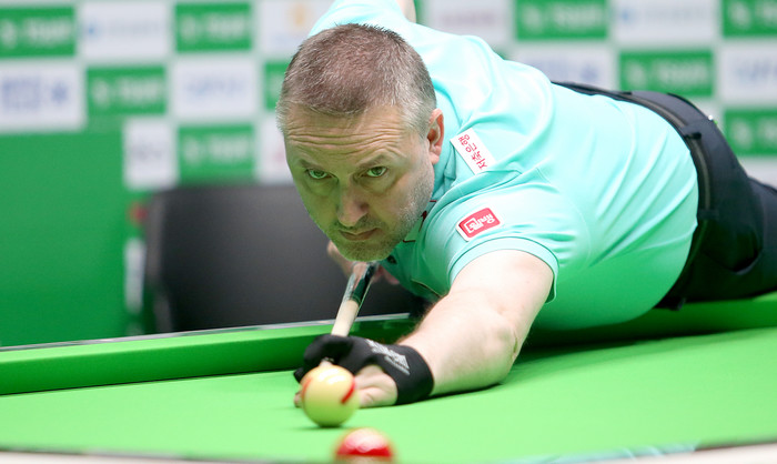 ▲ 128강에서 우승후보 강민구와 동점 끝에 승부치기로 승리한 쿠드롱(PBA 사무국 제공) |