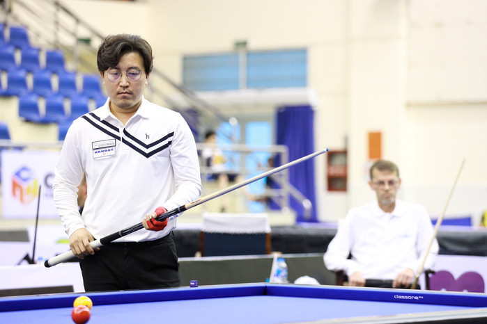 [Brilliant Billiards=김철호 기자] 41명의 한국 선수가 도전한 호찌민 3쿠션 월드컵에서 황봉주(안산시체육회, 185위), 김준태(경북체육회, 세계랭킹 17위)가 8강까지 살아남았으나 3쿠션 당구의 거장 토브욘 블롬달(스웨덴, 13위)과 마르코 자네티(이탈리아, 2위)에게 각각 패하며 4강 진출이 좌절됐다.
