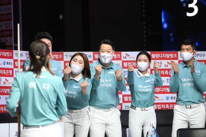 SK렌터카는 레펜스와 응고가 첫 세트를 따냈으나 2세트서 히다 오리에(일본)과 이우경, 3세트서 강동궁이 각각 김세연-최혜미, 하비에르 팔라존(스페인)에 3:9(7이닝), 11:15(8이닝) 무너지며 리드를 빼앗겼다.