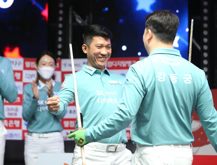 24일 경기도 광명시 테이크호텔에서 열린 ‘웰컴저축은행 PBA팀리그 2022-23’ 5라운드서 SK렌터카는 휴온스를 상대로 세트스코어 4:3 승리를 챙겼다. 첫 세트서 승리를 합작한 에디 레펜스(벨기에) 응고 딘 나이(베트남)이 단식서도 승리를 보태며 팀 승리를 견인했다.