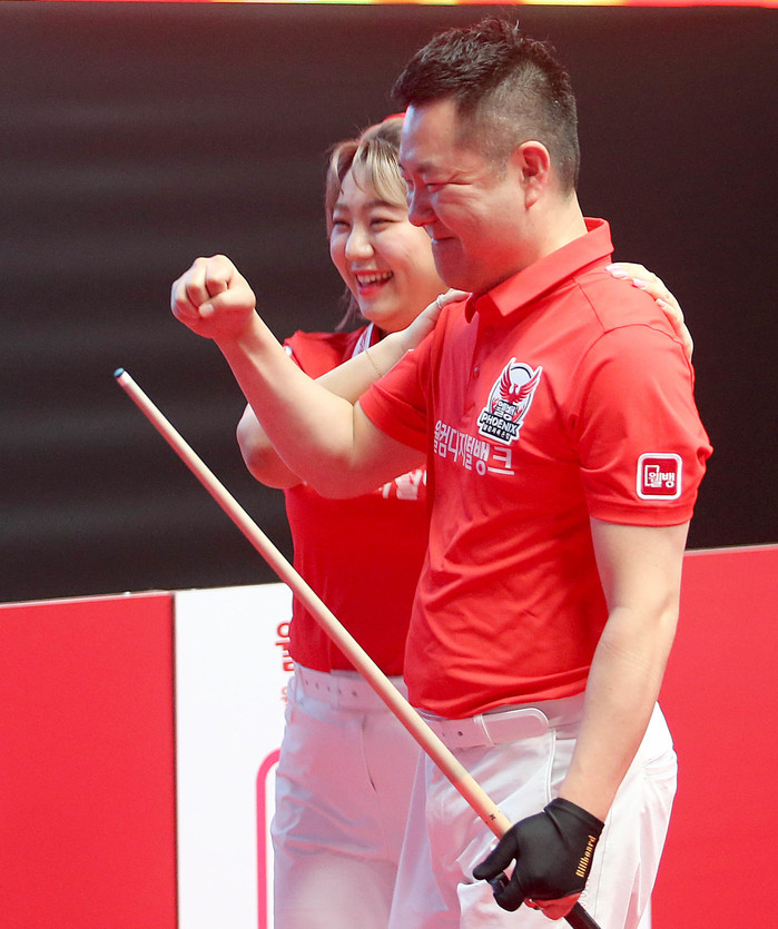[Brilliant Billiards=김철호 기자] 경기도 고양 빛마루 방송지원센터에서 열리고 있는 웰컴저축은행 2021-2022 PBA 팀리그에서 각팀 혼합복식 팀중에 돋보이는 환상콤비가 있다. 웰컴저축은행의 서현민,김예은조이다.