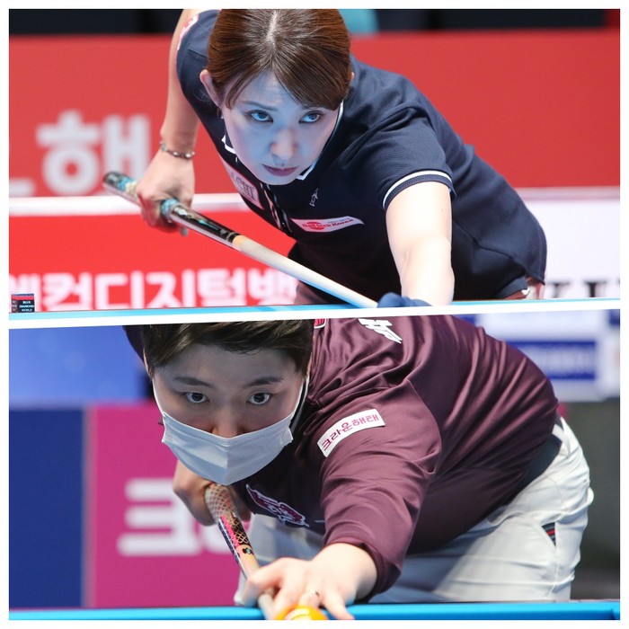 브릴리언트 빌리어드=김철호기자> 21일 강서구 메이필드호텔에서 열리는 크라운해태 PBA-LPBA 챔피언십 2021 세째날 여자부 8강 경기에서 맞붙게 되는 일본의 하야시와 백민주(크라운해태). 하야시는 2019년PBA 원년 웰빙저축은행 참피온십에서 임정수과 결승에서 패해 준우승을 차지한후 절치부심 우승을 향한 집념을 보이고 있고, 백민주(크라운해태)는 팀리그를 통해 한층 나아진 실력으로 누가 승리를 할지 점치기 어려운 경기가 될 것이다.