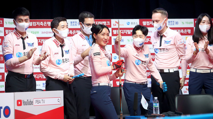 [Brilliant Billiards=김철호 기자] 29일부터 시작된 웰컴저축은행 팀리그 후반기 첫날경기에서 새로 팀에 영입된 두선수들의 신고식이 희비가 엇갈렸다. 지난 TS샴프 투어대회에서 2위를 차지하며 최연소 우승을 노렸던 용현지(TS샴프)는 크라운해태와의 경기 2세트 여자단식에서 강지은에게 11대4로 패하고. 휴온즈로 영입된 최혜미는 김예은을 상대로 11대8로 승리하며 첫 신고식을 치루었다.