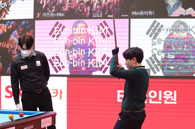 초반 첫 번째 경기에서 김은빈을 파죽지세로 몰아 6이닝 하이런 5점을 기록하며 11:2로 승리한 김세연은 두 번째 세트에서도 11:7로 꺾고 결승에 선착하는 듯 했으나, 전열을 가다듬은 김은빈의 뱅크샷 호조로 세 번째 세트를 6:11로 내줬다.