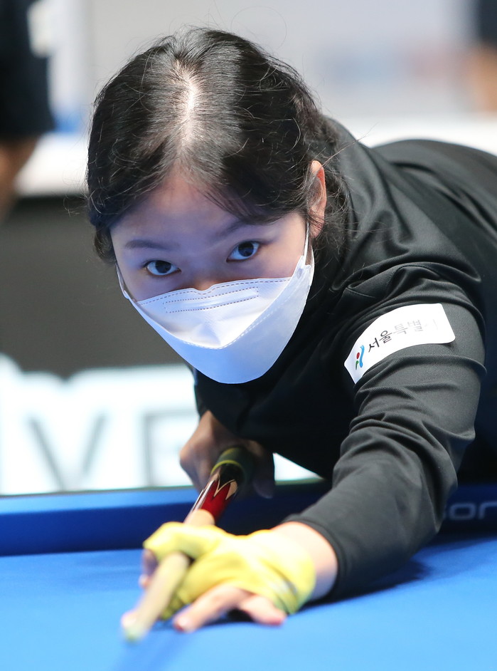 ▲PQ라운드에서 조 2위로 최종예선에 탈락한 한국여자 당구 랭킹 1위 한지은 |