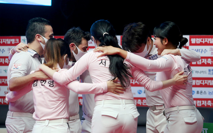 한편, 5라운드부터 굳게 선두를 지키던 웰컴저축은행은 후기리그 들어 첫 연패를 기록, 선두권을 노리는 팀들에게 추격을 허용했다. 하나카드를 상대한 웰컴은 3세트서 프레드릭 쿠드롱(벨기에)이 필리포스 카시도코스타스(그리스)를 15:4(5이닝)로 꺾었을 뿐 나머지 4세트를 내주며 세트스코어 1:4로 패배했다.