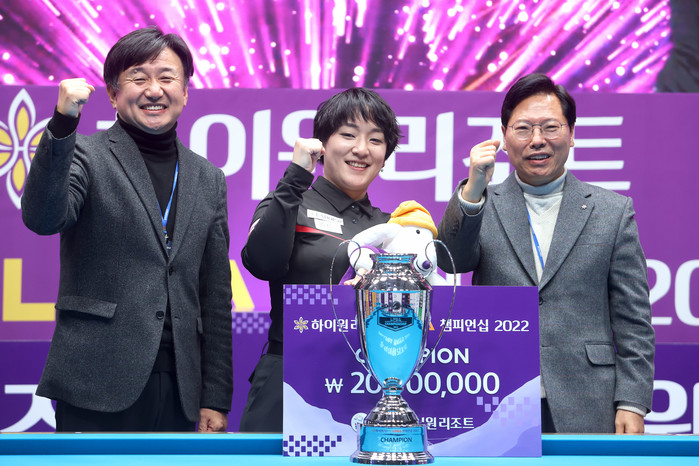 [Brilliant Billiards=박상현 기자] 여자 프로당구(LPBA) 대표 ‘친한파’ 히가시우치 나츠미가 LPBA 11번째 챔피언에 등극했다. 15일 강원도 정선 하이원리조트 마운틴플라자동 원추리홀에서 열린 ‘하이원리조트 PBA-LPBA 챔피언십 2022’ LPBA 결승전에서 히가시우치는 백민주(크라운해태)를 세트스코어 4:1(11:4, 11:8, 11:5, 8:11, 11:2)로 꺾고 프로 첫 투어 정상에 올랐다.