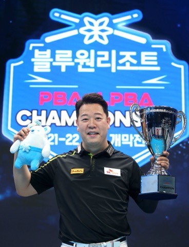 <PBA NEWS>21밤 10시부터 벌어진 21-22PBA 블루원리조트 개막전 투어 PBA 결승에서 지난 3월 월드참피언십에서 결전을 벌였던 사파타(블루원리조트)와 강동궁(SK렌터카)이 재격돌하며 장장 3시간여의 대접전 끝에 헐크 강동궁이 세트스코어 4대 3(15-3,15-10,15-9,2-15,14-15,13-15,9-11)으로 역전승을 거두며 월드참피언십에서 이루지 못한 참피언의 트로피를 거머쥐었다.