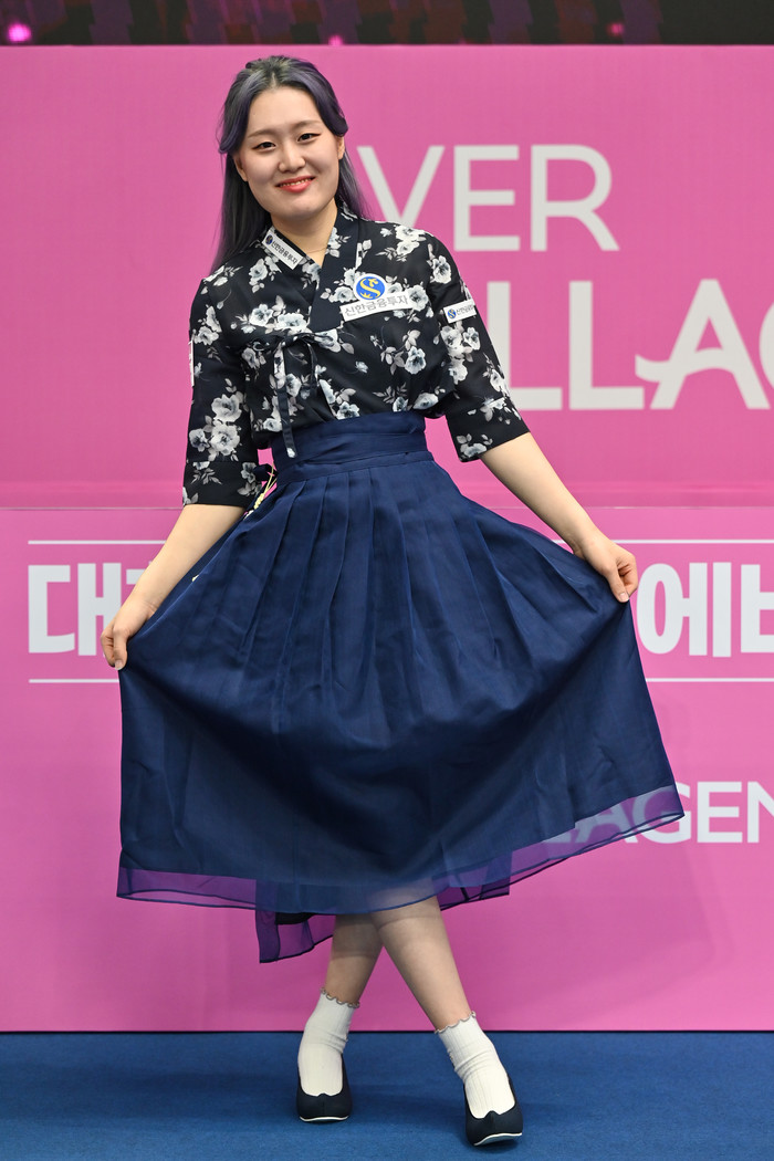 당구대 앞에 나섰다. 캐주얼, 한복, 교복, 레깅스 등 다양한 패션 뽐낸 LPBA 선수들.