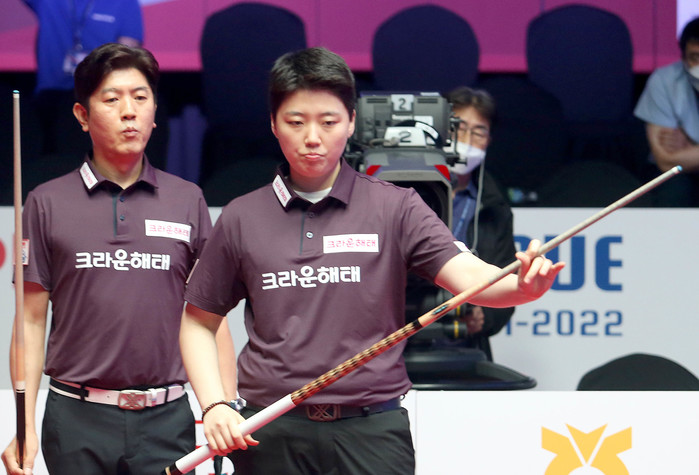 3중, “선두권 도약 위해선 4세트 승리가 필수”4위 크라운해태는 총 14세트 가운데 팀 리더 김재근과 백민주가 9경기나 호흡을 맞췄다. 이는 NH농협카드의 조재호-김민아(10경기)에 이은 리그 두 번째 최다출전이다. 결과보다는 꾸준함에 무게를 두고 호흡을 맞춰가는 듯한 모양새인데 초반 4경기(3승1패) 이후 1승4패로 급격히 무너졌다. 이에 2라운드 말미에는 강지은이 다비드 마르티네스(스페인), 이영훈과 호흡을 맞췄다. 3승 2패로 나쁘지 않은 성적을 거둔 만큼 3라운에는 강지은이 4세트에 나설 가능성도 있다.