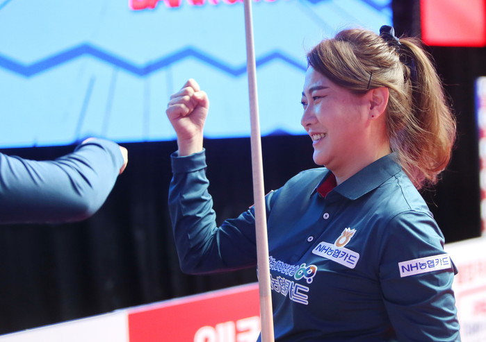 [Brilliant Billiards=김철호 기자] 8일 고양시 빛마루방송센터에서 열린 ‘웰컴저축은행 PBA팀리그 2021-22’ 후반기 5라운드 첫 번째경기. NH농협카드와 SK렌터카의 경기에서 NH농협카드가 조재호의 2승에 힘입어 가볍게 SK렌터카를 4대0으로 완승하며 승점 3점을 확보 승점 15점으로 2위로 올라섰다.