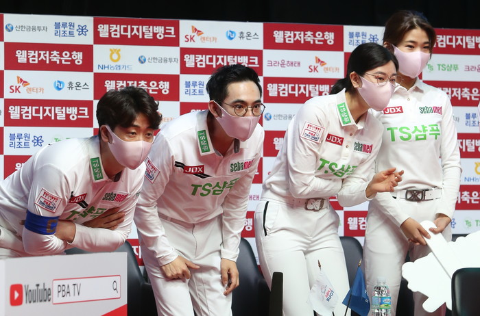 김종원의 샷에 조금만 더 가기를 바라며 고개숙이며 경기를 지켜보는 선수들[Brilliant Billiards=김철호 기자]