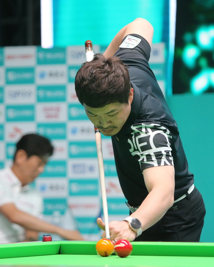[Brilliant Billiards=김철호 기자] 18일 오후 서울 강서구 메이필드 호텔에서 열린 ‘하나카드 PBA-LPBA 챔피언십’ PBA 32강전. 한국의 강동구와 그리스의 파파콘스탄티누의 경기에서는 강동구가 백전노장 파파콘스탄티누를 상대로 세트 스코어 3(15-2,15-7,15-4) 대0으로 완벽한 승리를 거두며 16강에 진입했다. 32강전 전 경기였던 퍼펙트큐의 스타 베트남의 응고딘 나이는 한국의 김병섭과의 경기에서 세트스코어 3대2(15-14,11-15,15-9,2-15-11-9)로 무릎을 꿇고 16강 진입애 실패했다.
