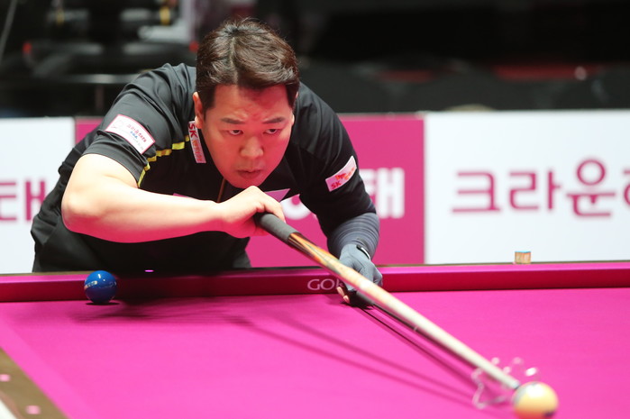 [Brilliant Billiards=김철호 기자] 14일 오후 고양 빛마루 방송센터에서 열린 “크라운해태 PBA-LPBA참피언십 21-22” PBA 준결승전 두 번째 경기. 2승의 챔피언들인 강동궁과 "당구의 신" 쿠드롱과의 경기에서 1세트 하이런 10점으로 간단하게 한세트를 가져오며 15대1로 큰점수차로 한세트를 가져온 강동궁이 좋은 출발을 보였다.