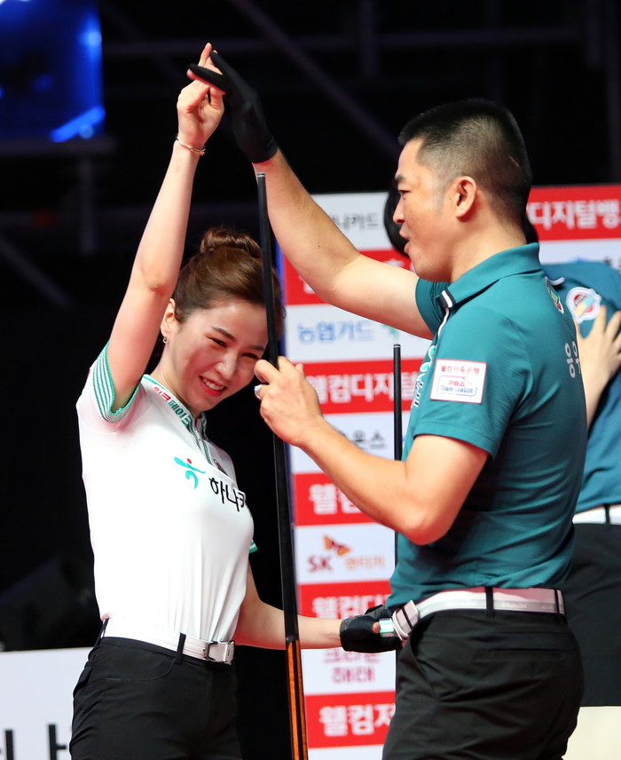 10일 오후 고양 방송지원센터에서 열린 ‘웰컴저축은행 PBA 팀리그 2022-23’ 1라운드 마지막날 첫 경기 중위권에 머물러 있는 웰컴저축은행 과 1순위를 달리고 있는 하나카드의 경기에서 세트스코어 2승으로 앞서 나가던 웰컴저축은행이 3세트 하나카드의 응우옌 과 김진아의 남녀복식에서 세트스코어 9대7로 잡히며 추격의 빌미를 제공했다.