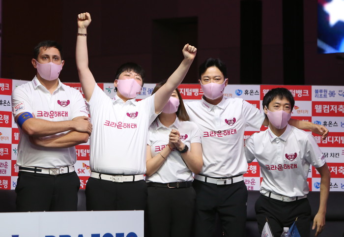 27일 강원도 춘천시 엘리시안강촌에서 열린 ‘웰컴저축은행 PBA 팀리그 2022-23’ 3라운드 이틀차 경기서 크라운해태는 세트스코어 0:3 끌려가던 상황에서 4세트를 내리 따내며 4:3 극적인 역전 승리를 거뒀다. 이로써 크라운해태는 공동2위를 달리던 웰컴저축은행을 직접 끌어내리며 단독 2위(9승7패)로 올라섰다.
