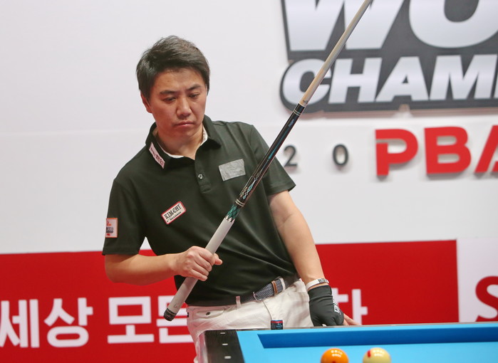 [브릴리언트 빌리아드=김철호 기자] 4일 광진구 그랜드워커힐호텔에서 열린 PBA 월드참피언십 8강전 첫경기에서 쾌조의 3연승으로 8강까지 올라온 김종원이 pba 28위의 랭킹 성적으로 32강 리그에 합류하여 16강을 거쳐 8강전에서 터키의 비롤 위마즈를 맞아 풀세트 접전 끝에 마지막 세트 9이닝 11대14에서 한점을 추가하며 긴경기를 마치고 4강에 선착하며 우승의 꿈을 가질 수 있게 되었다,