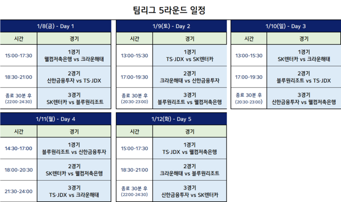 더욱이 오는 2월 예정인 팀리그 파이널까지 불과 5,6라운드만 앞두고 있어 경쟁이 더욱 치열해질 것으로 보인다. 팀리그 파이널에는 총 3개 팀이 진출할 예정이며, 팀리그 파이널에 진출할 상위 3개팀을 향한 경쟁은 5라운드부터 매우 치열해질 전망이다.