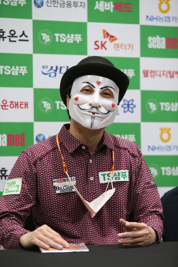 = 개인방송을 하면서 서바이벌 경기 방식으로 콘텐츠를 진행했다.방송에 대한 좋지 않은 선입견 때문에출연하시는 분들에게가면을 주문해 드렸다.가면에 대한 불편함으로 제가 쓰기 시작했는데 잘 어울렸다.여러 가면 중 하나를 골라서 우연하게 쓰게 됐다. 해커들이 흔히 쓰는 가면이라 당구 해커라는 닉네임이 나왔고 ‘당구를 해킹한다’는 의미에서 가면을 쓰고 시작했다.