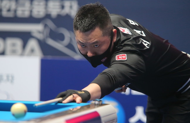 ▲ 서현민이 모랄레스를 상대로 볼을 조준하고 있다. |