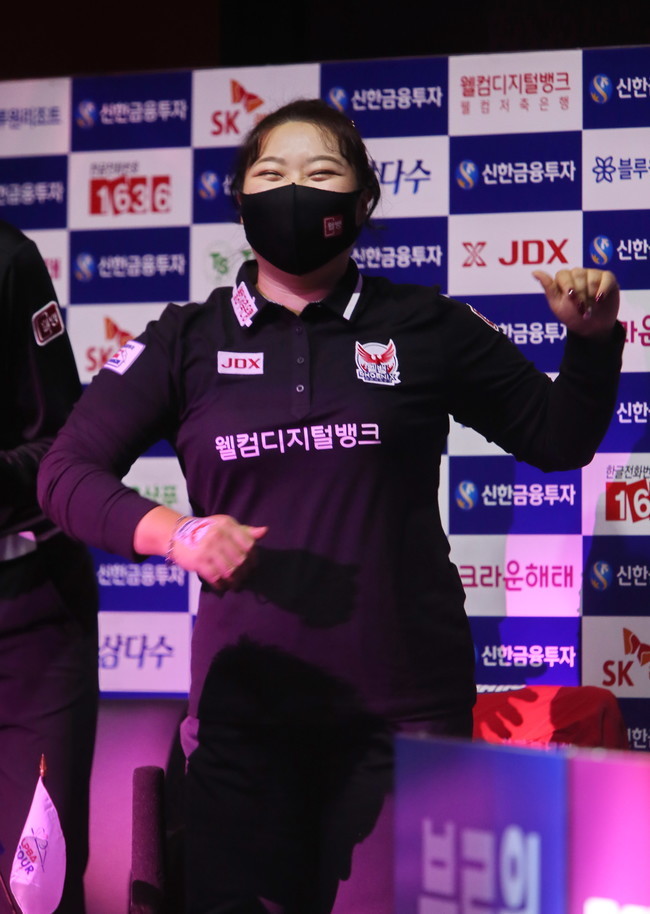 ▲ 웰빙피닉스의 김예은선수가 흥에 취해 춤을 추고 있다 |