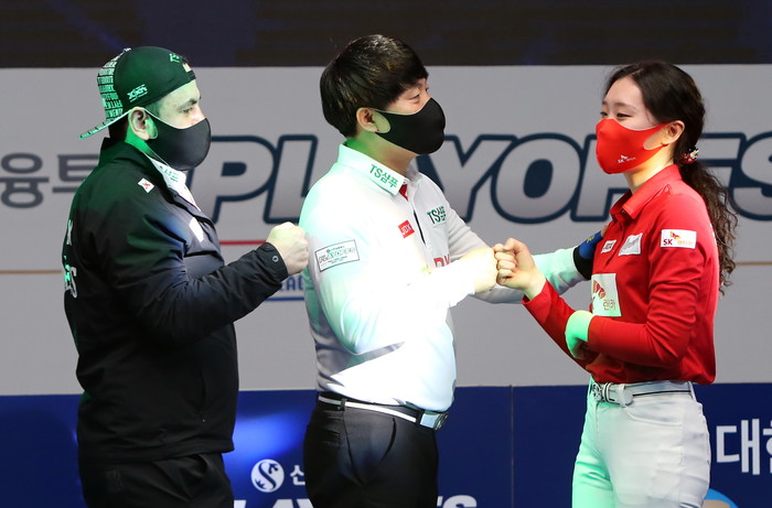 일 경기도 고양시 빛마루방송 지원센터에서 열린 ’20-21 PBA팀리그 신한금융투자 포스트시즌’ 플레이오프 3차전서 TS·JDX히어로스는 SK렌터카위너스와 세트스코어 3:3 무승부에 이어 승부치기 써든데스에서 김남수의 귀중한 한점으로 승리하며 참피온 결정전으로 직행했다.4세트까지 3대1로 패색이 짙던 TS·JDX히어로스는 그동안 SK 렌터카 위너스와의 경기에서 가장 승률이 좋은 김남수의 귀중한 승리로 동점으로 가는 발판을 마련했다.
