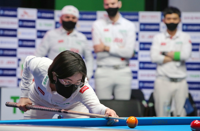 [브릴리언트 빌리아드=김철호 기자] 22일 고양 빛마루 방송센타에서 열린 PBA 파이널 6차전 TS.JDX히어로즈 와 웰컴저축은행 웰빙피닉스의 1세트 남자복식경기에서 웰컴저축은행 웰빙피닉스는 최강 쿠드롱과 위마즈를 투입하여 승기를 잡으려 오더를 냈고 TS.JDX히어로즈는 외국인선수들을 후반으로 몰아 후반 승기를 잡으려 배치하였다.