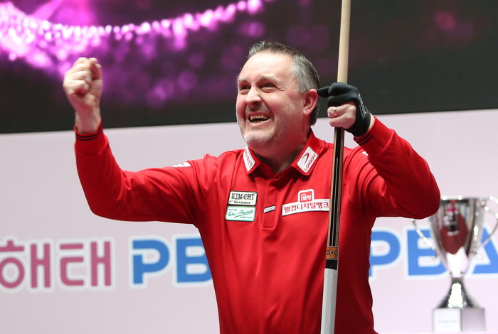 [Brilliant Billiards=김철호 기자] 14일 오후 고양 빛마루 방송센터에서 열린 “크라운해태 PBA-LPBA참피언십 21-22” PBA 결승전 .한국의 김영섭을 세트스코어 4대0으로 물리치고 결승에 올라온 월드챔피언 사파타와 한국의 헐크 강동궁을 4대1로 누르고 결승에 올라온 당구의 신 쿠드롱과의 경기에서 쿠드롱이 세트스코어 4대 1(4-15,5-15,15-3,11-15,13-15)로 월드챔피언 사파타를 누르고 3번째 챔피언에 오르며 결승 승률 100%를 달성했다