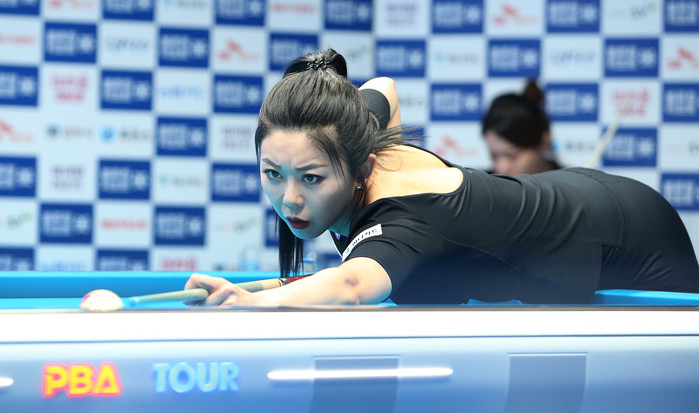 이번대회 과감한 의상으로 눈길을 끈 김가영은 결승전에서도 뒤가 많이 파인 검은색 상의를 입고 경기에 출전했다.두 선수는 결승전 답게 매 세트를 팽팽하게 맞섰다. 선공을 가르는 뱅킹서 승리한 김가영이 첫 세트서 하이런 5점을 앞세워 7이닝만에 11:5로 승리를 따내자 김민아가 2이닝 21이닝 장기전 끝에 11:10 한 세트를 만회했다.