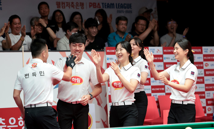 하림도 이날 진기록을 썼다. 하림은 NH농협카드를 세트스코어 4:3으로 돌려세웠는데 2세트(여자복식)에선 박정현이 1이닝째 퍼펙트큐를 달성하며 9:0(1이닝)으로 완승해 세트스코어 1:1을 만들었다. 이후 세트스코어 3:3 박빙의 상황에서 7세트엔 쩐득민이 1이닝째 퍼펙트큐롤 만들어내며 11:2(1이닝)로 승리했다. 한 팀이 한 경기에서 2차례 퍼펙트큐를 기록한 건 팀리그 최초 기록이다.