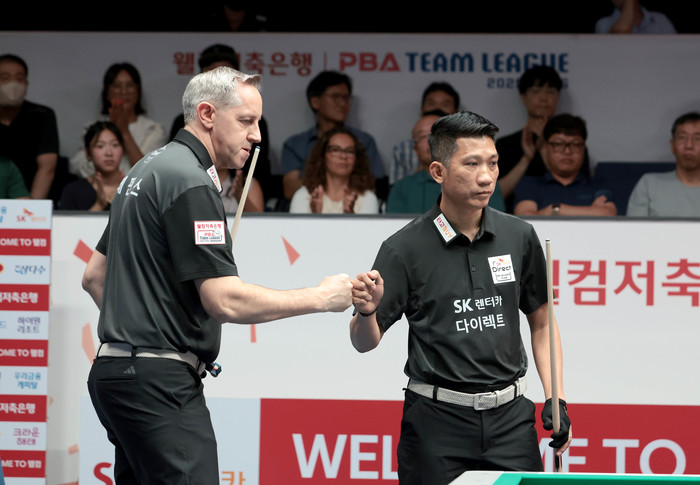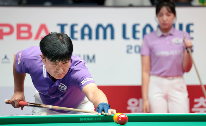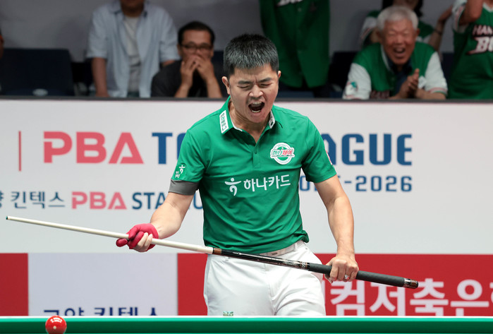 [Brilliant Billiards=유성욱 기자] 프로당구 PBA 팀리그 ‘강호’ 하나카드가 1라운드 우승 9부 능선을 넘었다. 최종일에 휴온스를 상대로 승리할 시 우승을 확정한다. 29일 경기도 고양시 ‘고양 킨텍스 PBA 스타디움’에서 열린 ‘웰컴저축은행 PBA 팀리그 2025-2026’ 1라운드 8일차서 하나카드는 SK렌터카를 세트스코어 4:1로 꺾었다.