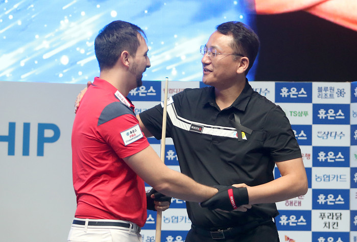 분위기를 뒤집은 마르티네스는 7세트서도 2이닝부터 5이닝까지 5-1-1-2점을 만들며 9:1로 크게 앞서나갔다. 김영섭은 6이닝에서 하이런 6점을 쏟아내며 7:9 맹추격에 나섰지만 마르티네스는 7이닝째 절묘한 2뱅크샷을 성공시키며 남은 2점을 추가, 11:7 그대로 경기를 마무리하고 우승을 확정했다.