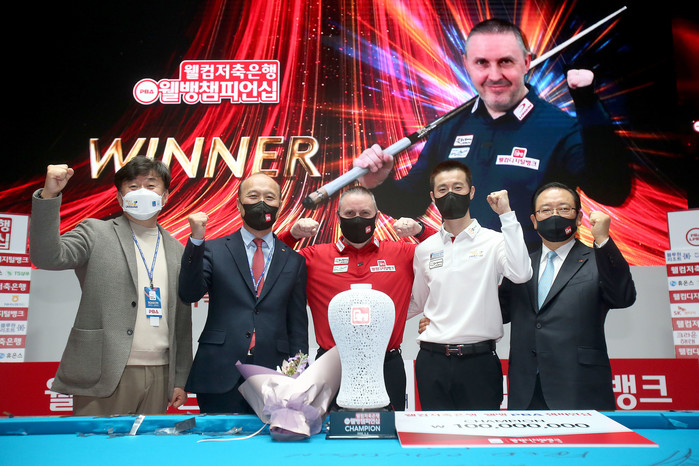 반면, PBA투어 첫 결승 무대에 오른 김임권은 우승 문턱에서 아쉬움을 삼켰으나 ‘최강’ 쿠드롱을 상대로 풀세트까지 가는 명승부를 펼치며 PBA의 새로운 ‘스타 탄생’을 알렸다. 김임권은 준우승상금 3,400만원을 획득, 종전 32위였던 상금순위를 8위로 끌어올리며 32위까지 주어지는 ‘PBA 월드챔피언십’ 티켓을 손에 넣었다.