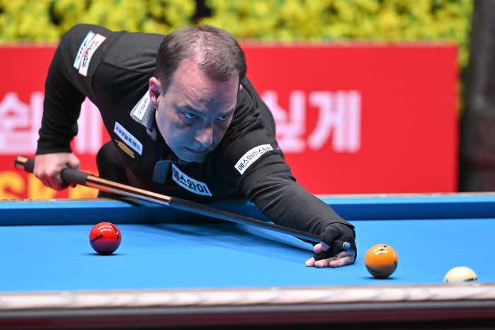[Brilliant Billiards=김철호 기자] 2024-25시즌 투어 챔피언에 오른 다비드 마르티네스(스페인·크라운해태) 다니엘 산체스(스페인·에스와이) 조건휘(SK렌터카)가 월드챔피언십 32강 조별리그서 탈락했다. 12일 제주특별자치도 제주시 한라체육관에서 열린 ‘SK렌터카 제주특별자치도 PBA-LPBA 월드 챔피언십 2025’ PBA 32강 조별리그 최종일서 A조 마르티네스는 최성원(휴온스)에 세트스코어 1:3으로 패배했다. 올 시즌 3번의 우승을 차지하며 랭킹 1위를 달리던 마르티네스는 A조 3위로 밀려나며 조 2위까지 주어지는 16강 진출 티켓을 확보하지 못하며 시즌 일정을 마감했다.