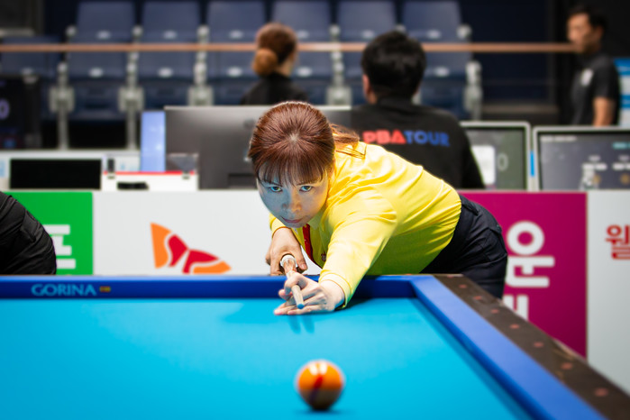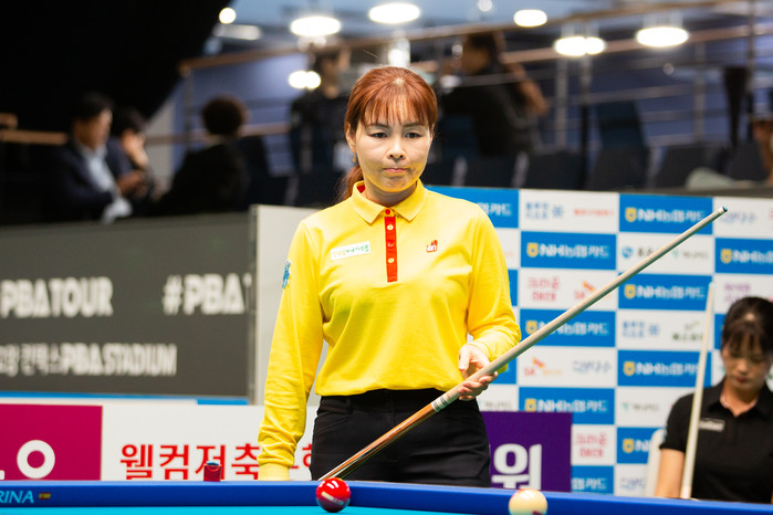 ▲ 세계선수권 우승자인 이신영이 프로 데뷔 첫경기를 치르고 있다<사진=PBA 사무국제공> |
