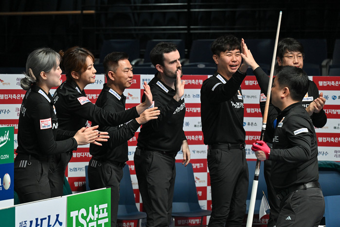 이날 NH농협카드는 첫 세트서 조재호가 9득점을 올리는 등 하비에르 팔라존(스페인)-최성원을 3이닝만에 11:2로 승리를 거두며 기분 좋게 출발했다. 휴온스는 2세트서 김세연-전애린이 김민아-김보미를 9:0(6이닝)으로 제압하면서 균형을 맞췄지만, 3세트서 세미 사이그너(튀르키예)를 상대한 조재호가 한 때 1:7로 뒤지던 상황을 15:9로 역전하며 분위기를 뒤집었다. 이후 오성욱과 김보미가 팔라존-장가연을 9:7(10이닝), 5세트서는 안토니오 몬테스(스페인)가 김봉철을 6이닝만에 하이런 5점을 앞세워 11:6으로 물리치면서 세트스코어 4:1을 완성, 경기를 승리로 마무리했다.