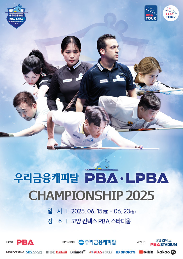 [Brilliant Billiards=김철호 기자] 프로당구협회(PBA·총재 김영수)는 최근 ‘우리금융캐피탈 PBA-LPBA 챔피언십 2025’ 대진표를 발표했다. 우리금융캐피탈 챔피언십은 오는 15일부터 23일까지 ‘고양 킨텍스 PBA 스타디움’에서 열린다.
