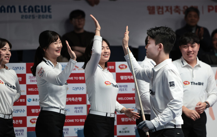 [Brilliant Billiards=유성욱 기자] 역대급 반전을 쓰고 있는 크라운해태가 PBA 팀리그 4라운드 우승을 눈앞에 뒀다. 23일 경기도 고양시 ‘고양 킨텍스 PBA 스타디움’에서 열린 ‘웰컴저축은행 PBA 팀리그 2025-2026’ 4라운드 8일차서 크라운해태는 하나카드를 세트스코어 4:2로 물리치고 5연승, 단독 선두(7승1패·승점18)로 올라섰다. 같은 날 SK렌터카가 NH농협카드에 패배하면서 2위(5승3패·승점17)로 내려섰다. 이로써 크라운해태가 우승 경쟁에 유리한 고지를 점하게 됐다.