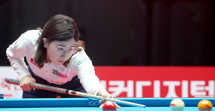 직전 대회(NH농협카드 챔피언십)에서 정상에 올랐던 김가영은 3조서 최종 76점으로 1위, ‘당구 여신’ 차유람도 8조서 75점 1위로 대회를 순조롭게 출발했다.