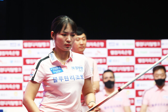 이후 옆돌리기, 뒤돌려치기는 물론 횡단 샷, 뱅크샷을 차례로 득점하며 차곡차곡 득점을 쌓았다. 특히 4득점 이후 고난이도의 투 뱅크샷 득점이 나오자 블루원 벤치에서는 환호가 쏟아졌다. 10득점째에는 뒤돌려치기를 시도한 샷이 행운도 따르면서 스롱의 득점은 계속됐다. 10:9 역전, 마지막 뒤돌려치기까지 성공시키며 11:9 역전 승리와 동시에 퍼펙트 큐를 완성했다.