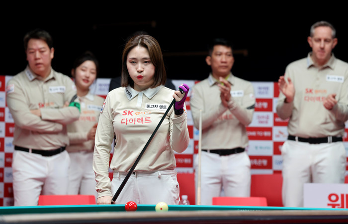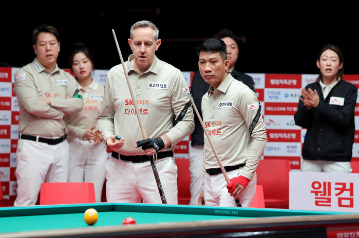 [Brilliant Billiards=김철호 기자] SK렌터카가 프로당구 PBA 팀리그 5라운드 정상에 섰다. 더불어 정규리그 종합 1위도 확정하며 포스트시즌 파이널 무대에 직행했다. 13일 경기도 고양시 ‘고양 킨텍스 PBA 스타디움’에서 열린 ‘웰컴저축은행 PBA 팀리그 2024-2025’ 5라운드 7일차서 SK렌터카가 하이원리조트를 세트스코어 4:1로 제압했다. 더불어 같은 날 크라운해태가 우리금융캐피탈에 3:4로 패배했다.