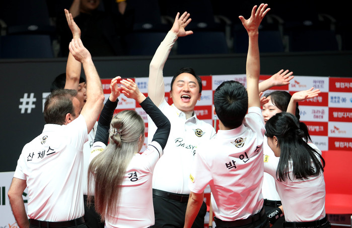 [Brilliant Billiards=서형석 기자] PBA 팀리그 에스와이와 SK렌터카, NH농협카드가 2라운드 최종일 결과로 우승 경쟁을 펼친다. 23일 경기도 고양시 ‘고양 킨텍스 PBA 스타디움’에서 열린 ‘웰컴저축은행 PBA 팀리그 2023-2024’ 2라운드 8일차 경기서 에스와이와 SK렌터카가 각각 하이원리조트와 블루원리조트를 세트스코어 4:1, 4:2로 꺾고 승점3을 추가, 나란히 공동 1위로 올라섰다. NH농협카드는 하나카드를 세트스코어 4:1, 크라운해태는 휴온스를 세트스코어 4:2로 물리치고 승점3을 확보했다.