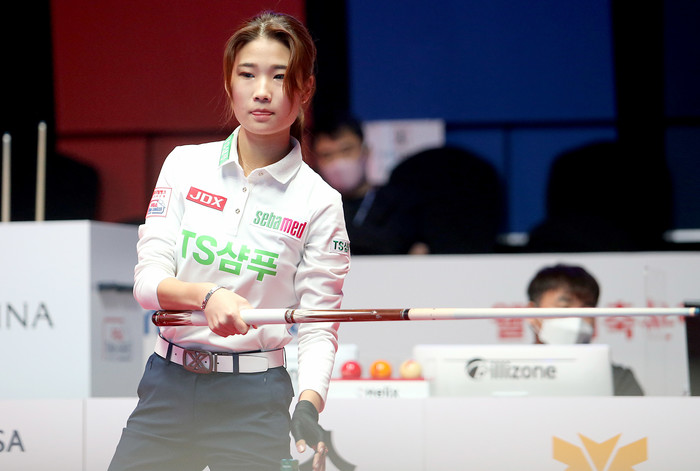 [Brilliant Billiards=김철호 기자] 29일부터 시작된 웰컴저축은행 팀리그 후반기 첫날경기에서 새로 팀에 영입된 두선수들의 신고식이 희비가 엇갈렸다. 지난 TS샴프 투어대회에서 2위를 차지하며 최연소 우승을 노렸던 용현지(TS샴프)는 크라운해태와의 경기 2세트 여자단식에서 강지은에게 11대4로 패하고. 휴온즈로 영입된 최혜미는 김예은을 상대로 11대8로 승리하며 첫 신고식을 치루었다.
