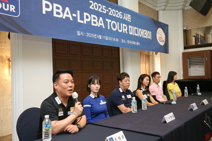 [Brilliant Billiards=김철호 기자] 프로당구협회(PBA·총재 김영수)는 11일 오후 2시 30분 서울 중구 한국프레스센터에서 ‘2025-26시즌 PBA-LPBA투어 개막 미디어데이’를 개최했다. 이 자리에는 지난 시즌 대상 강동궁(SK렌터카) 김가영(하나카드)을 비롯해 ‘슈퍼맨’ 조재호(NH농협카드) 최원준(에스와이) 김상아(하림) 서한솔(우리금융캐피탈)이 참석해 각오를 전달했다.