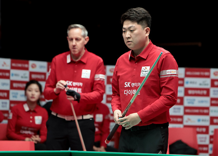 [Brilliant Billiards=유성욱 기자] PBA 팀리그 3라운드 우승팀 SK렌터카가 10연승을 질주, 4라운드 단독 선두에 올랐다. 17일 경기도 고양시 ‘고양 킨텍스 PBA 스타디움’에서 열린 ‘웰컴저축은행 PBA 팀리그 2025-2026’ 4라운드 2일차에서 SK렌터카는 에스와이를 세트스코어 4:2로 제쳤다. 4라운드에서 2승을 올린 SK렌터카는 승점 6으로 단독 선두에 올랐다.